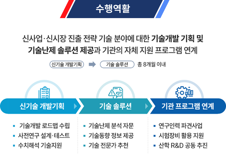 5대 전략분야 관련 연구를 수행 중인 연구원을 활용하여 신기술 개발기획 및 기술 솔루션 등을 지원